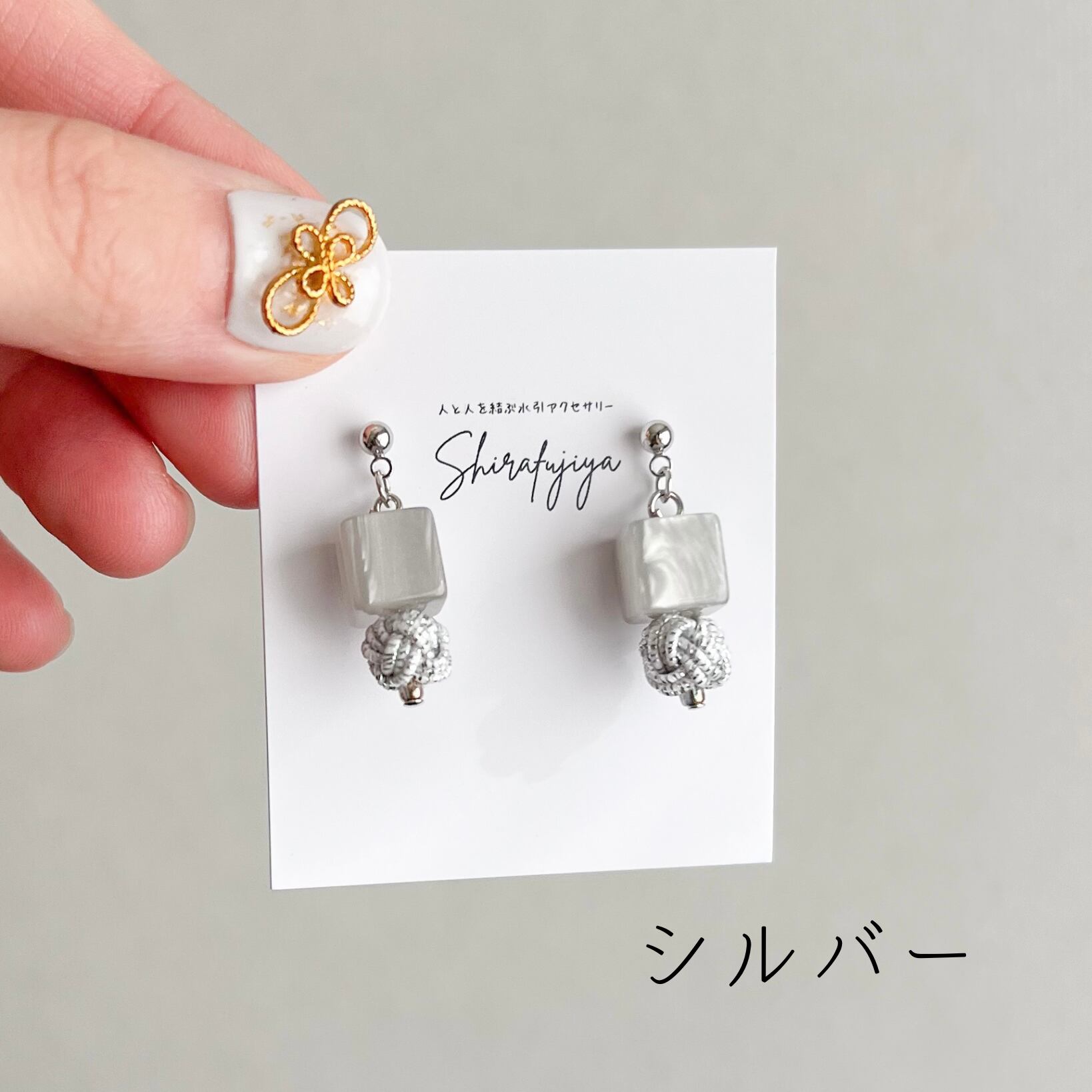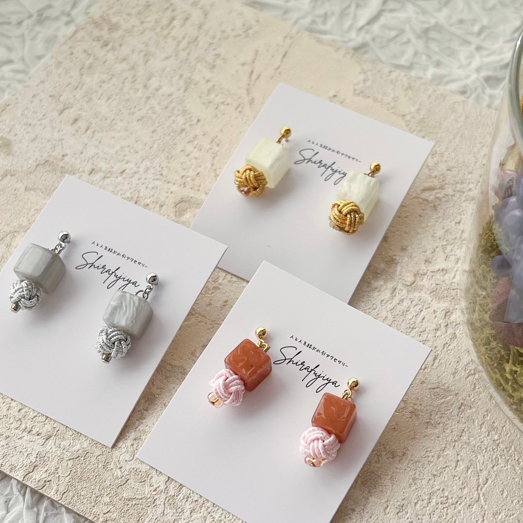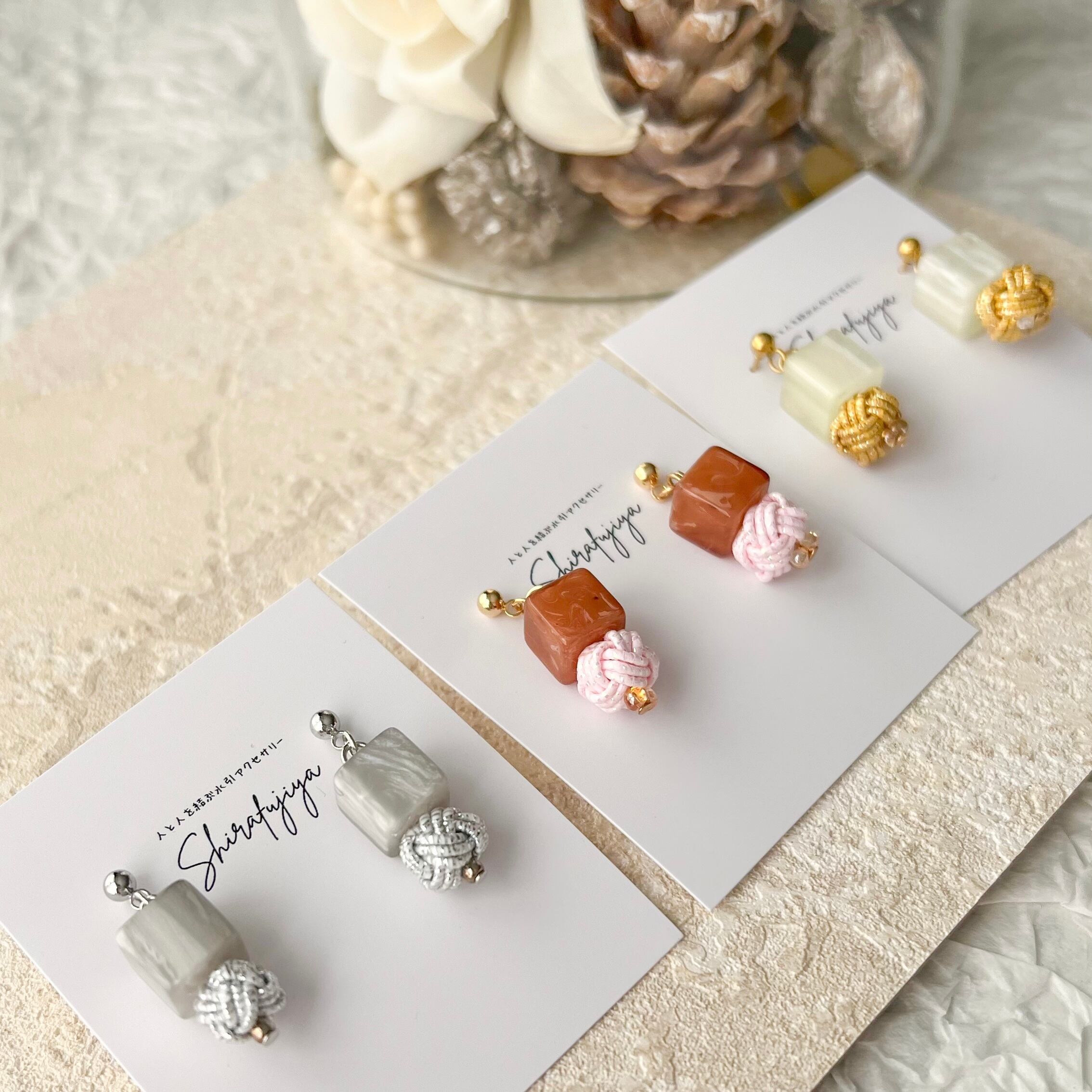 ビーズ×玉結び小ぶりアクセ