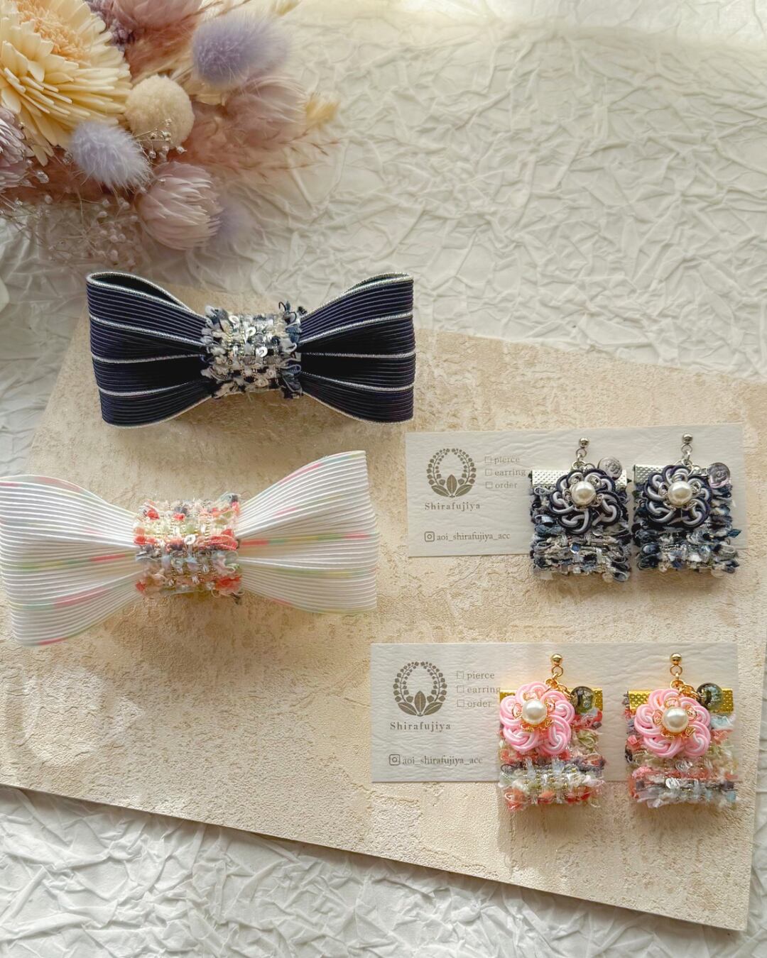 耳飾り単品のほか、蝶ネクタイとのおそろいセット販売ページもございます。